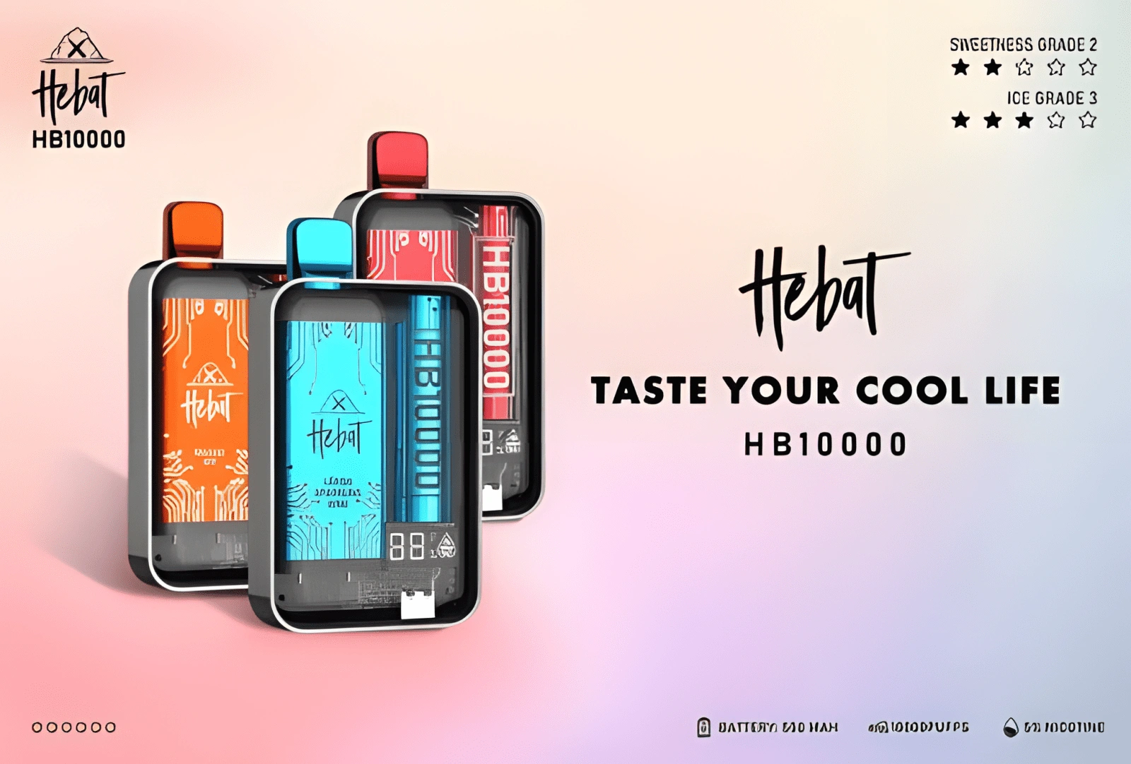 A3: HEBAT 的口味調性通常甜度適中,並配有中等至偏強的涼感,以確保在大容量煙油下風味依然保持清晰。